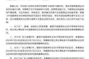 三、对蒋川处以禁赛5年、撤销中国象棋协会技术等级称号的处罚,禁赛期自2024年7月24日起至2029年7月23日止,禁赛期内禁止其从事和参与中国象棋协会及其会员单位组织或授权组织的所有象棋赛事和活动。