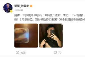 孙亚龙:减肥一年多减去20多斤!现在能做100个标准冲肩俯卧撑