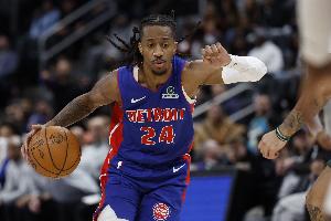 体育资讯3月24日讯 NBA常规赛,活塞半场65-52领先湖人。